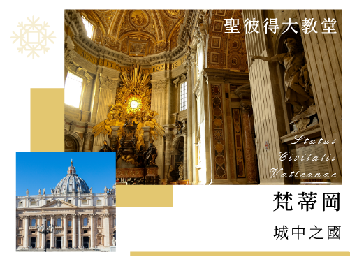 抵達後,我們還將拜訪羅馬城中城,同時也是世界最小最神秘的國家梵蒂岡,親見多納托·伯拉孟特、米開朗基羅、貝尼尼等文藝復興巨匠,把最高才華奉獻於此的聖彼得大教堂(含導覽),使聖彼得大教堂成為羅馬建築史上至高無上的最高點。