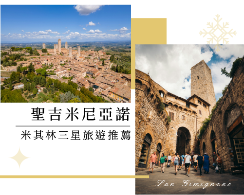 後前往聖吉米尼亞諾,是義大利中北部托斯卡尼大區西恩納省的一個城牆環繞的中世紀小城,主要以中世紀建築,尤其是城外數公里就可看見的塔樓聞名,《米其林旅遊指南》評為「三星級旅遊推薦」。舊時這裡盛產頂級葡萄酒和藏紅花,吸引了許多貴族商人在這裡定居。為了展現實力地位,各家族間瘋狂競爭,修建的塔樓一座比一座高,才造就了我們如今看見的聖吉米尼亞諾。城內是中世紀古鎮,城外則是托斯卡納大區典型的鄉村自然景色。