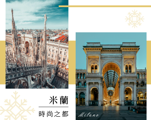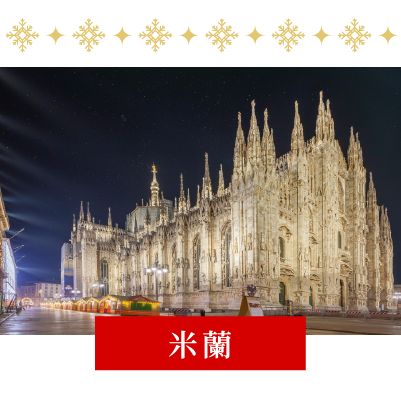 洋溢著聖誕氛圍,璀璨的燈光、令人驚豔的櫥窗,讓這座城市充滿時尚的聖誕氣息,這一切的中心米蘭大教堂廣場,在高聳的哥德式大教堂下,聖誕市集鱗次櫛比。這就是米蘭式的聖誕節:大膽、美麗、時尚。