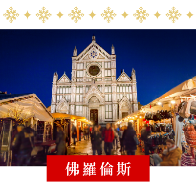 傍晚抵達佛羅倫斯後,特別安排「Florence Christmas Market」預計在2025年11月23日至12月22日舉行。佛羅倫斯聖誕市集充分展現了這座城市的節慶氛圍,如想在佛羅倫斯聖誕市場尋找手工禮品的人來說,這裡絕對符合你的需求。攤位上擺滿各種獨一無二的商品,例如手工製作的紡織品和精工細作的珠寶,典型的義大利節日裝飾品一直很搶手,遊客可以從佛羅倫斯的市場帶回一些「聖誕氣息」紀念品。當然美食也是一大亮點,義大利聖誕美食特色包括潘妮托尼、義式脆餅、熱栗子、熱紅酒或熱巧克力、當地起司、醃製肉類和橄欖油等美食,市集上的美食也增添了更多趣味。