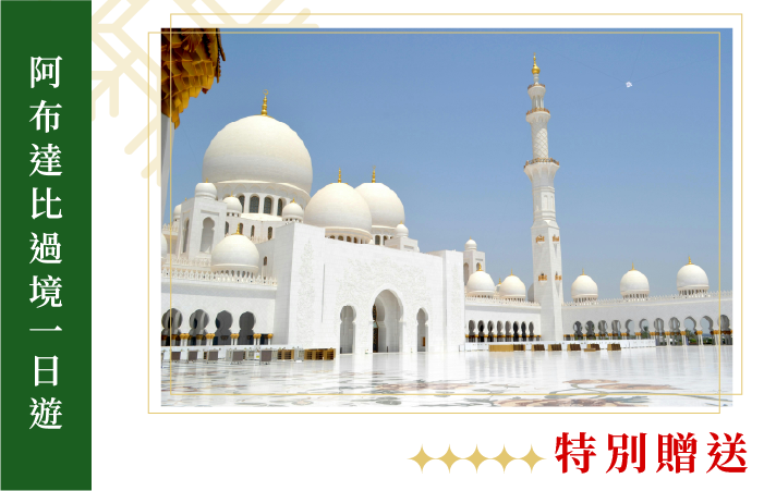 前往阿布達比大清真寺、羅浮宮分館、阿提哈德塔 (Etihad Towers)觀景台+下午茶、阿提哈精品廣場,享受阿布達比過境一日遊。