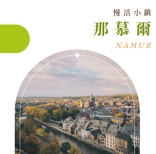 位在比利時南方瓦隆區,默茲河(Meuse)和桑布爾河(Sambre River)的匯流處,是比利時南部瓦隆區的著名古城,曾經因為地處要塞成為多次圍攻及戰鬥的戰場,留下不少歷史痕跡。阿姆斯廣場 Place d’Armes位在那慕爾市的市中心,主景點例如鐘樓、教堂等都在這附近。及拱門的旁邊就是那慕爾的國會大廈,這棟磚紅色的建築也是四周最顯眼的建築。穿過拱門會發現一座圓形的建築物,這就是那慕爾鐘樓,被列入聯合國世界文化遺產,造型獨特。聖歐平主教座堂 (St Aubin's Cathedral):圓頂非常醒目,是市區的另一重要地標。蝸牛雕像 (Djoseph et Françwès):位於國會大廈前,代表著那慕爾人悠閒的生活態度。