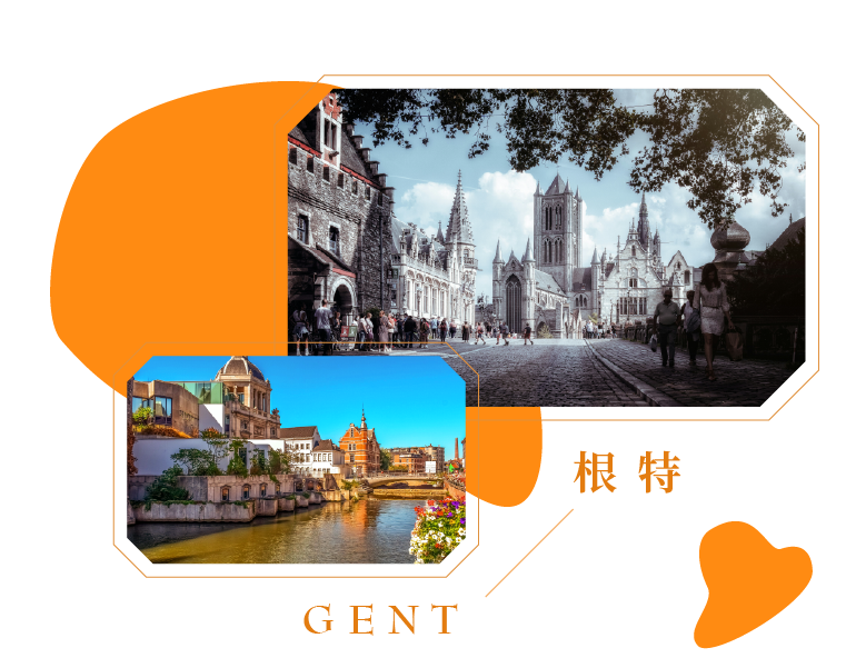 是東法蘭德斯省的省會,地處西爾得河和雷耶河的交會處,又有『花都』的美稱,中世紀與布魯日同因毛織業而興盛繁榮,古城內是四處洋溢書香氣息的大學城,橫跨雷耶河上的聖米歇爾橋,可以欣賞舊市街的景色;橋畔旁的香草河岸,匯集了中世紀建築櫛比鱗次;西元9世紀伯爵城堡,是為了抵抗北歐海盜入侵而建造;徒步漫遊巴佛廣場,鐘樓、聖巴佛大教堂、聖尼古拉斯大教堂的鐘塔高聳入天,也是根特往日繁榮的三大見證,特別安排搭乘電梯登上91公尺高的鐘樓,由高處將根特美景盡收眼底。