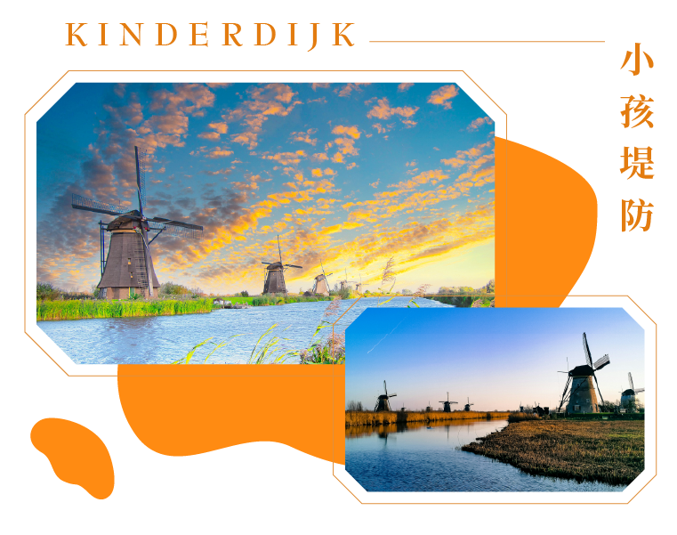 是北河沿岸的小村莊,擁有19座建於18世紀的風車,當時地面低於海平面近2公尺,風車的作用是用來汲水,將抽取的水導入Lek河,使得Alblasserwaard這個低於海平面地區,免於水患之苦,時而今日這些工作已被現代化的科技所取代,但是此地所遺留壯觀的風車美景,仍然被完整地保存著,重現荷蘭人與海爭地、對抗大自然的歷史,西元1997年,小孩堤防的風車正式被聯合國教科文組織列入世界文化遺產。