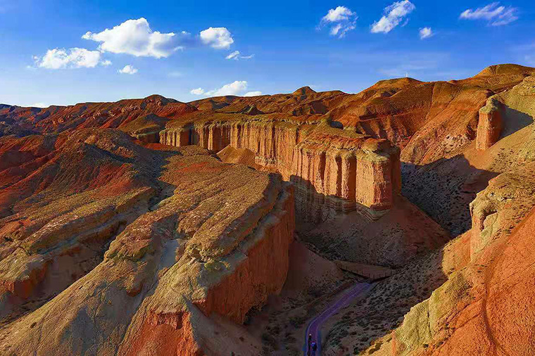 前往張掖遊覽七彩丹霞風景區,中國北方乾旱地區發育最典型的丹霞地貌,是國內唯一的丹霞地貌與彩色丘陵景觀高度複合區。色彩繽紛、觀賞性強、面積大,集雄、險、奇、幽、美於一身丹霞地貌造型。懸崖山巒全部呈現出鮮豔的紅褐色,展示出『色如渥丹,燦若明霞』的丹霞地貌。被譽為《世界10大神奇地理奇觀》!!!