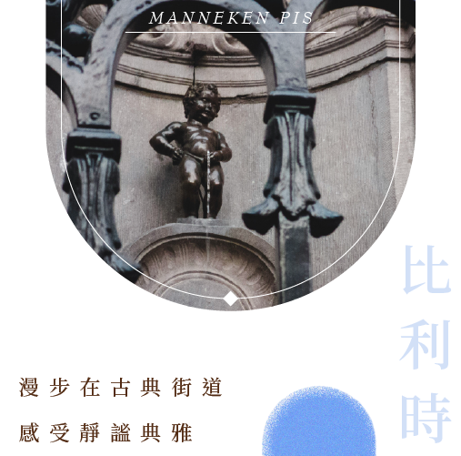 後驅車前往比利時首都~布魯塞爾Brussel。尿尿小童Manneken Pis是比利時首都布魯塞爾的市標。這座聞名於世的小男孩銅像是一座落於市中心步行區的雕像及噴水池。這個五歲小孩身材的雕像不大(身高約53公分),但有將近四百年的歷史。關於雕像起源有許多流傳的說法。其中一個是1142年,哥德佛瑞德公爵領軍對抗外敵,就在軍隊落敗之際,公爵將自己的小兒子放在搖籃裡掛在樹下,用來激勵軍隊士氣,最後得以擊敗了敵軍,得以凱旋。另外一個流行的故事大概是這個小孩半夜起來尿尿,看到鄰居的房子伸出一條燃燒中的引信,小孩找不到水源撲滅,靈機一動用灑尿把引信熄滅解救受困的人,為了感念這個小童而在原地做個石雕像永遠保留,供後人憑弔。建於1619年,由比利時雕刻家傑羅姆•杜奎斯諾伊(Jerôme Duquesnoy)所打造的。黃金廣場被大文豪雨果譽為「歐洲最華麗的廣場」(聯合國教科文組織列名之世界文化遺產),鋪設著美麗石磚的大廣場周圍盡是文藝復興和巴洛克式的華麗建築。黃金廣場有許多上了年代的建築,其中以市政大廳的面積最大,佔據著主位,成為最受歡迎的景點。