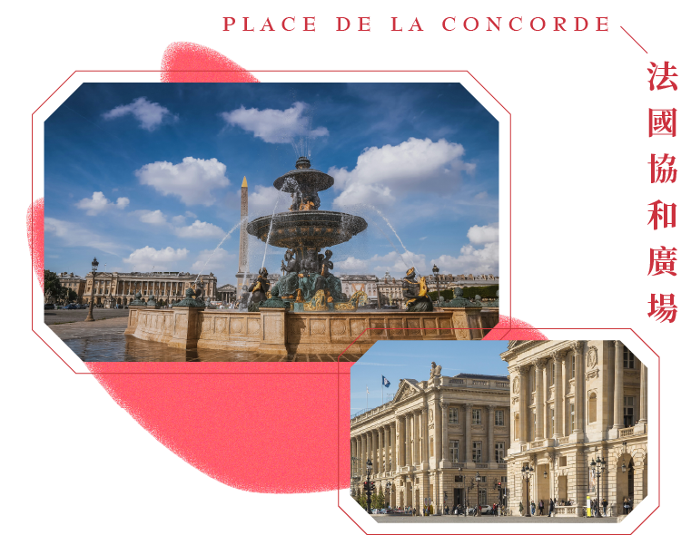 協和廣場位於巴黎市中心、塞納河北岸,是法國最著名廣場和世界上最美麗的廣場之一。因廣場中心曾塑有路易十五騎像,因此這裡曾被命名為路易十五廣場。大革命時期又被改名為革命廣場,路易十六、瑪麗王后曾在這裡被處決。之後又將其改稱為協和廣場,後經整修,最終形成了現在的規模。