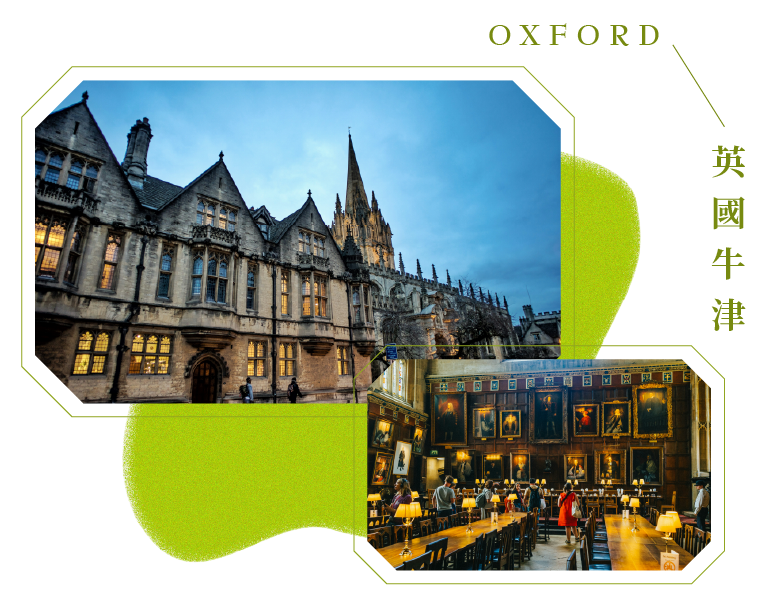 牛津大學既是嚴肅的學術殿堂,也是戲謔人生的『愛麗絲夢遊仙境』故事的起源處,處處洋溢著濃厚的學術氣息。牛津的基督教堂學院Christ Church College是牛津最大、建築最壯觀的學院,當然也因哈利波特的關係,是牛津人潮最洶湧的觀光勝地。而且這學院最引以為傲之處,就是在近代200年內產生了16位英國首相!真是人才濟濟。此城處處洋溢著濃厚的學術氣息,如:萬靈學院、大學學院,以及著名參觀景點瑞德克利夫拱頂、波德里安圖書館等都值得您細細品味。