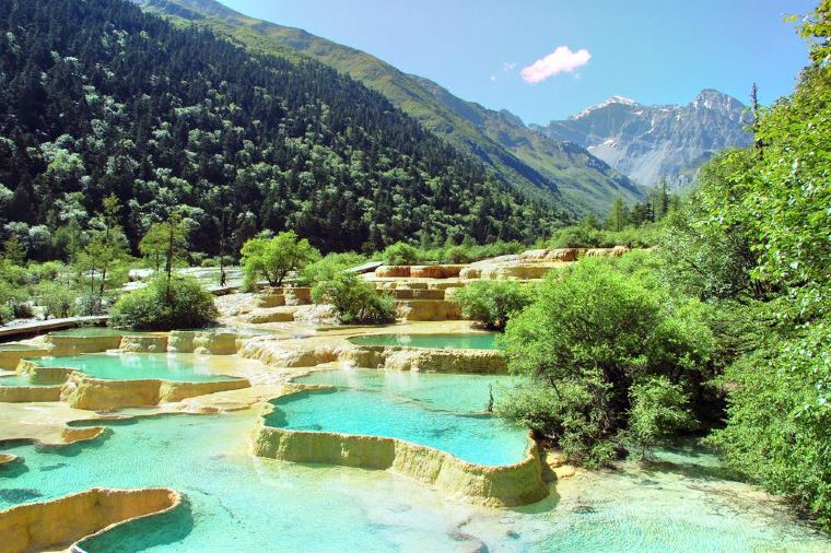 它位於四川省西北部岷山山脈南段,朵爾那峰北麓,是長江水系嘉陵江源頭的一條支溝,景區內則渣窪溝、日則溝、樹正三條溝構成資Y字形,三條溝總長50公里,成階梯的分佈著高山海子、瀑布群、水質清澈秀明,森林原始繁茂。1992年聯合國教科組織將九寨溝列入〔世界自然遺產名錄〕。