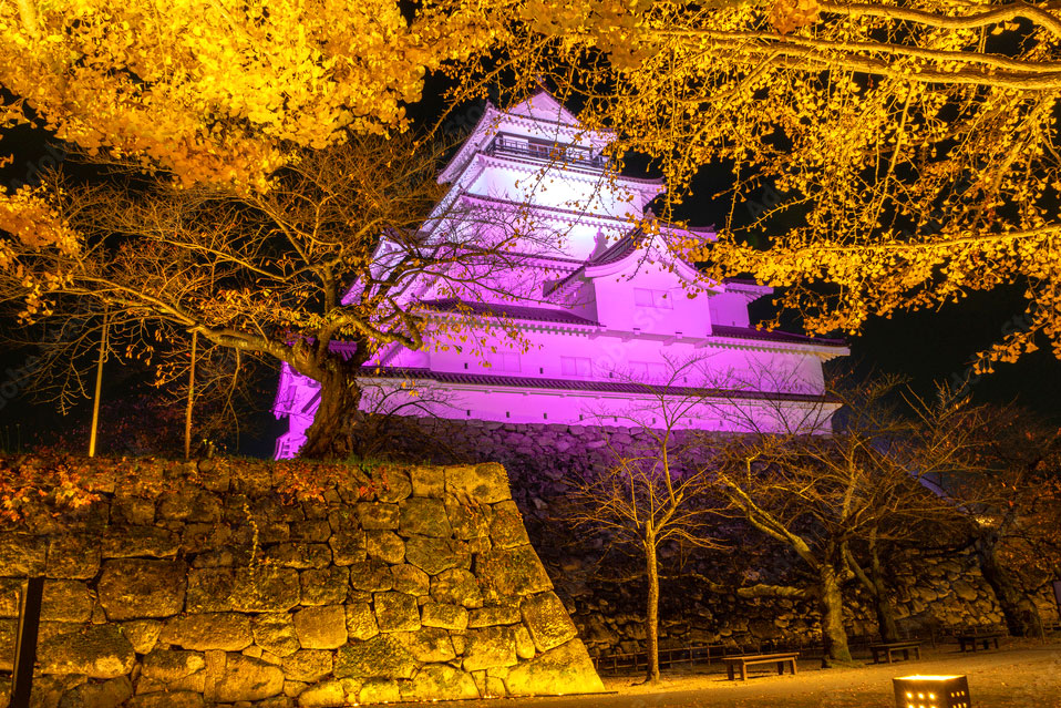 最早是建於西元1384 年,幕府時代著名的鶴之城迄今有六百多年歷史,因戊辰戰爭把這座城堡焚燬,直到1965 年才被重建。鶴城為層層綠林所包圍,東西城廓共有2公里長,城外景色秀麗、綠意盎然,讓您不禁對此城懷起思古之幽。