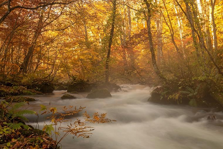 奧入瀨溪流是唯一從十和田湖流出的清澈溪流,總長約14 公里,景觀變化非常豐富。由於十和田湖具有自然調節溪流水量的功能,使得奧入瀨溪終年維持穩定獨特的溪流之美,而以健行欣賞這引人入勝的溪畔楓紅景緻是最好的方式。