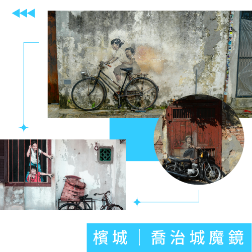 古蹟上的壁畫及裝置藝術,讓檳城整座老城搖身變成一個藝術大畫廊,壁畫特別之處在於融合社區與建材特色,透過畫筆來呈現別有意義的壁畫。
