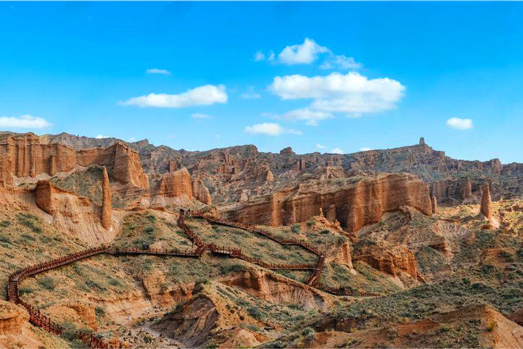 一片龐大的紅色山體群,在烈日下宛如燃燒的火焰,經過億萬年的風剝雨蝕、洪流沖刷,山體形成具象化的怪石,如大象臉、如布達拉宮...奇趣豐富,難怪曾入選國家地理「全球最美十大峽谷之一」。