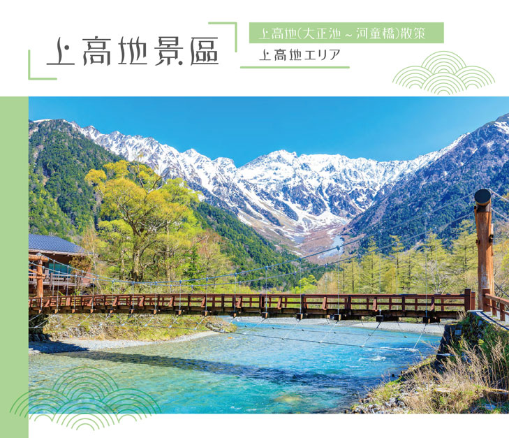 是日本長野縣西部的飛驒山脈南部梓川上游的旅遊勝地。標高大約1,500米。全域屬松本市,是中部山嶽國立公園的一部分,為國家文化財。這裡有溫泉,也是攀登穗高岳和槍岳時的登山基地。 服裝建議:到上高地不管是哪個季節,來到上高地就要謹記「多層次洋蔥式穿搭」!