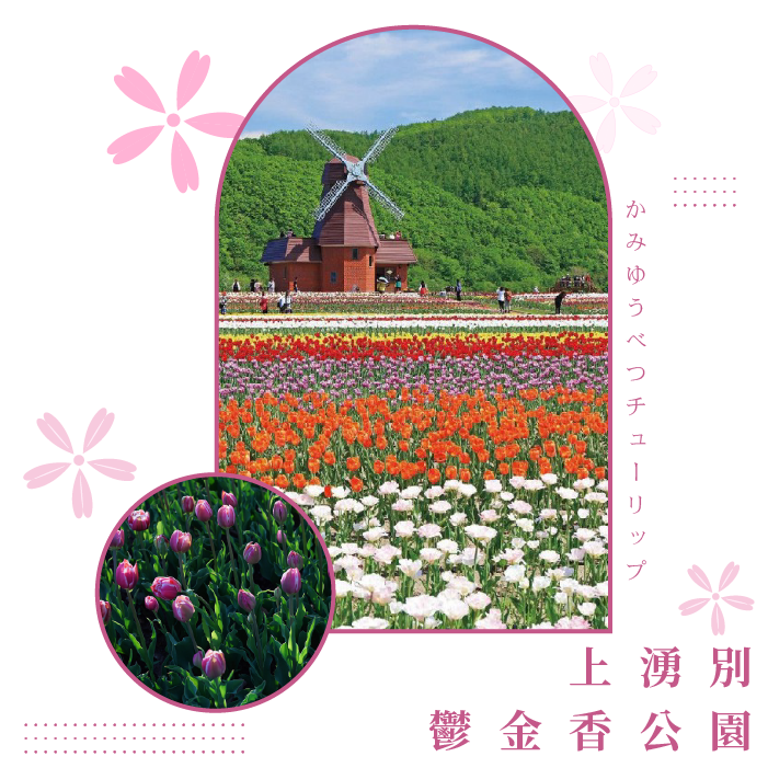 上湧別町位於北海道網走支廳中部,是日本最北端的蘋果產地,其識別象徵物為鬱金香妖精。在國道242號線旁的鬱金香花圃,乃當地銀髮俱樂部的成員起頭帶動,大量栽培鬱金香;現在成為鬱金香的主題公園,公園總面積12.5公頃中,約7公頃為鬱金香田,包含正宗荷蘭直接進口珍奇品種,種有120種120萬株鬱金香。