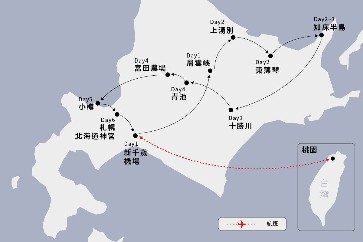 住宿飯店→北海道神宮→購物中心→千歲機場 ✈ 桃園